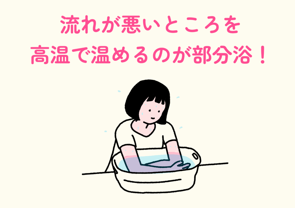 部分浴は全身浴よりも高い温度で芯まで一気にまで温めることができるからです。